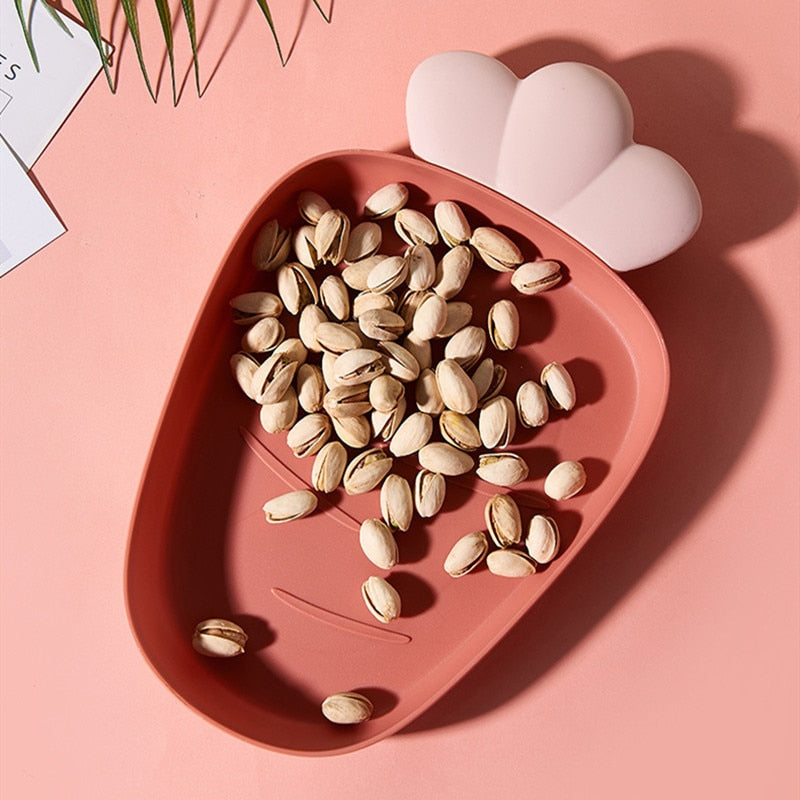 Plato de plastico con forma de zanahoria.
